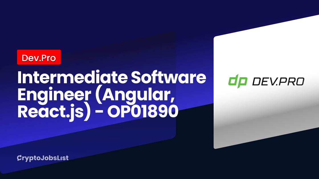Apply here 👉 Intermediate Software Engineer (Angular, React.js) - OP01890