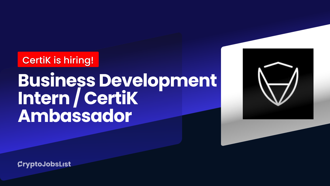 Tags: Web3 Jobs • Web3 Internship Jobs • Cryptocurrency Entry Level Jobs • Cryptocurrency Remote Jobs • Cryptocurrency Business Development Jobs • Blockchain Full Time JobsAbout the CompanyCertiK is the largest blockchain security auditor and provides a comprehensive suite of tools to secure the industry at scale. To date, CertiK has worked with over 4,900 Enterprise clients, secured over $557 billion worth of digital assets, and has detected over 18,000 vulnerabilities in blockchain code. Our clients include leading projects such as OKX, Tether, Ripple, and Pancakeswap. Our investors include top VCs like Tiger Global, Coatue Management, Shunwei Capital and Hillhouse Capital as well as industry leaders like Coinbase Ventures and Binance.Investors = Insight Partners, Sequoia, Tiger Global, Coatue Management, Lightspeed, Advent International, SoftBank, Hillhouse Capital, Goldman Sachs, Shunwei Capital, IDG Capital, Wing, Legend Star, Danhua Capital and other investors.